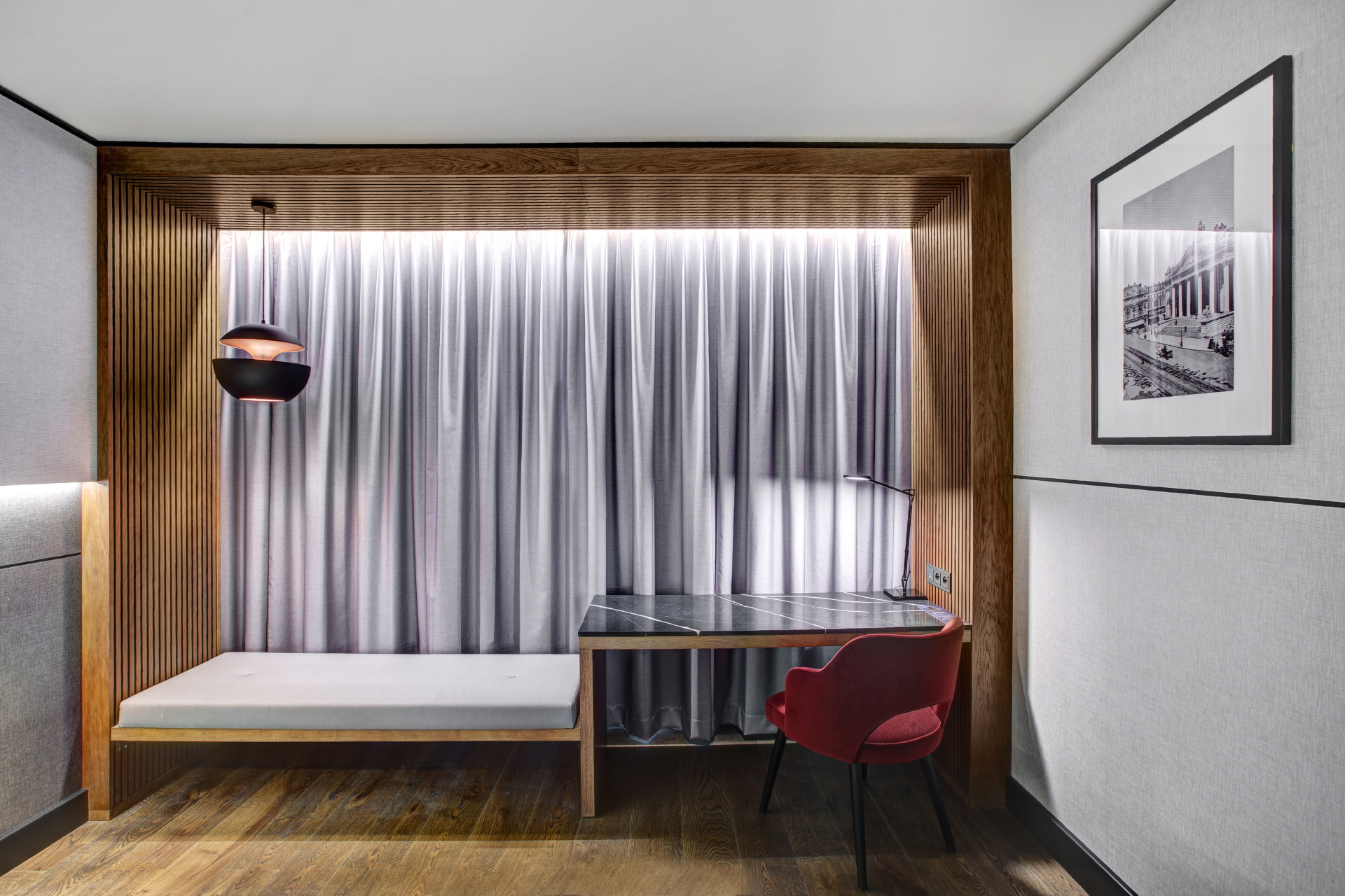 Standard produced bespoke fixed furniture solutions for 87 of the hotel’s 282 rooms and suites, carefully translating Michel Jaspers’ design into precise, durable pieces. Headboards, wardrobes, workspaces and integrated storage were developed to complement the strong architectural lines and selected finishes, while keeping rooms calm, practical and easy to use. The result is a series of guest spaces that reinforce the hotel’s renewed identity—elegant, characterful and perfectly in tune with the spirit of Grand Place and Brussels city life.