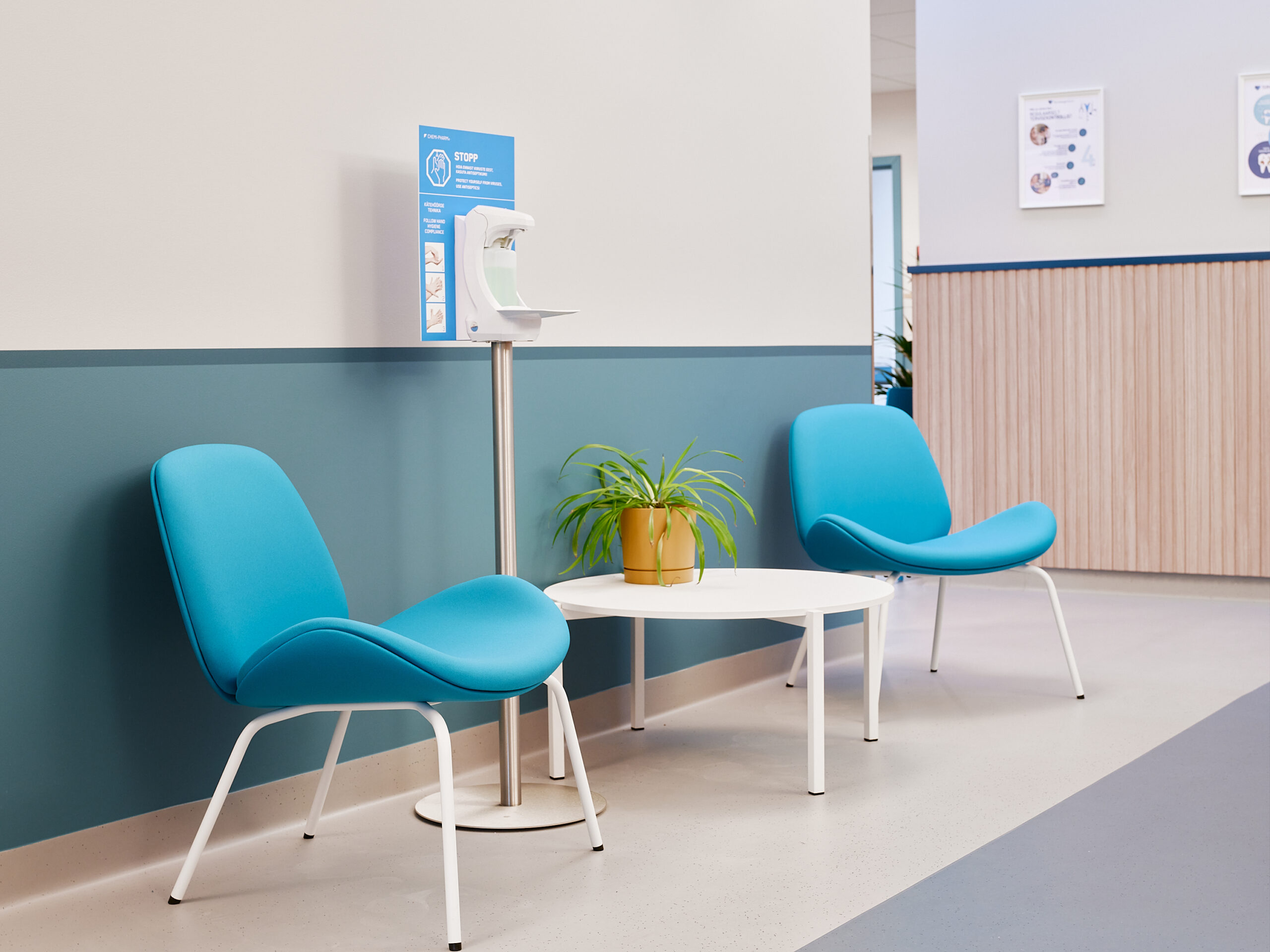 Working from interior architect Aljona Kamenik’s concept, Standard furnished the patient rooms and public areas with solutions tailored to healthcare use. In the treatment and consultation rooms, ergonomic workstations, practical storage and easy-to-clean surfaces support professional workflows and hygiene standards. In the reception and waiting zones, comfortable seating, thoughtfully placed furniture and a harmonious material palette help reduce stress and create a friendly, approachable atmosphere. The result is a coherent healthcare environment where function, comfort and design come together in support of everyday care.