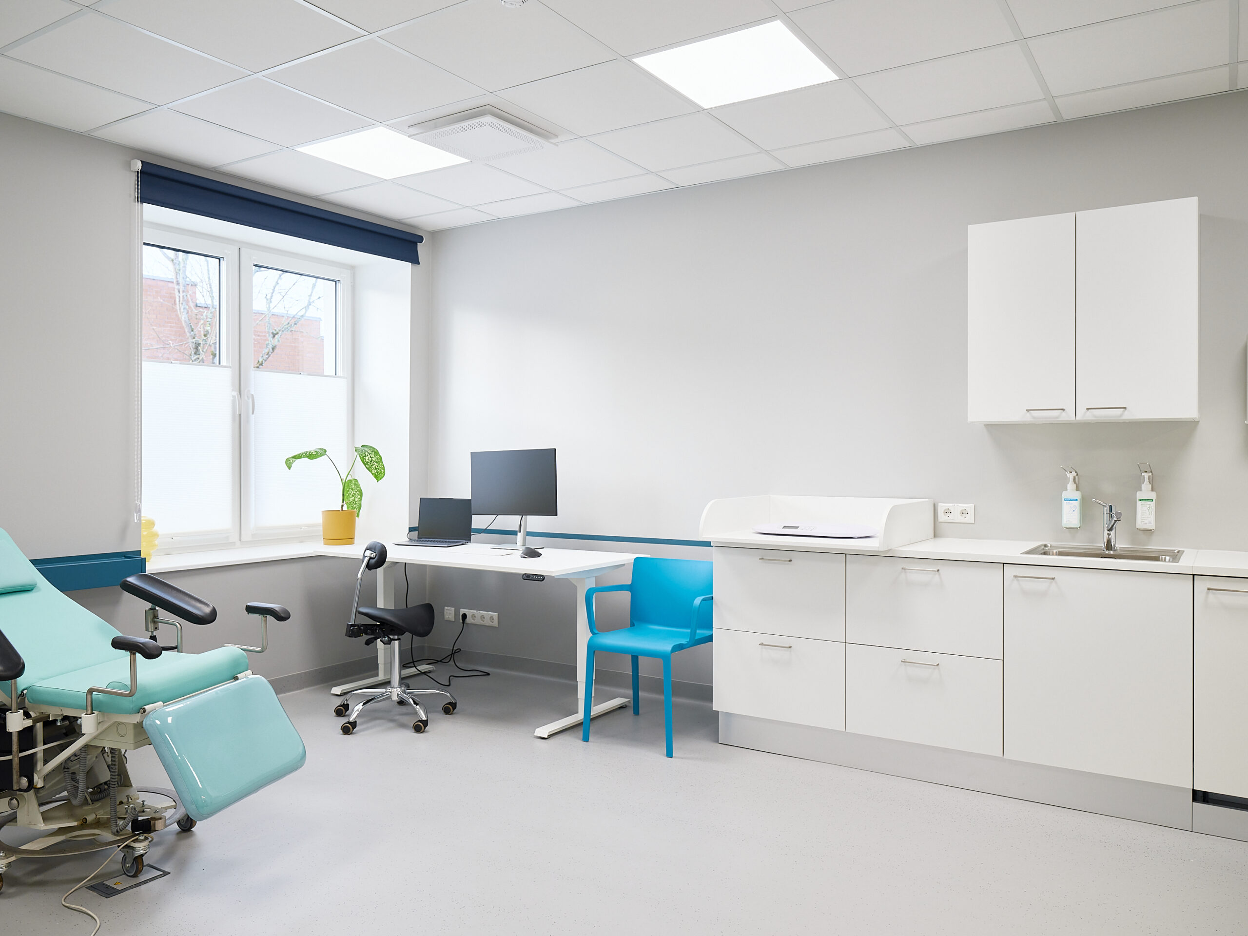 Design and furnish a family doctor’s centre that supports efficient daily work for medical staff while helping patients feel safe and at ease – ensuring that patient rooms and public areas meet strict functional requirements without losing their sense of warmth and comfort.