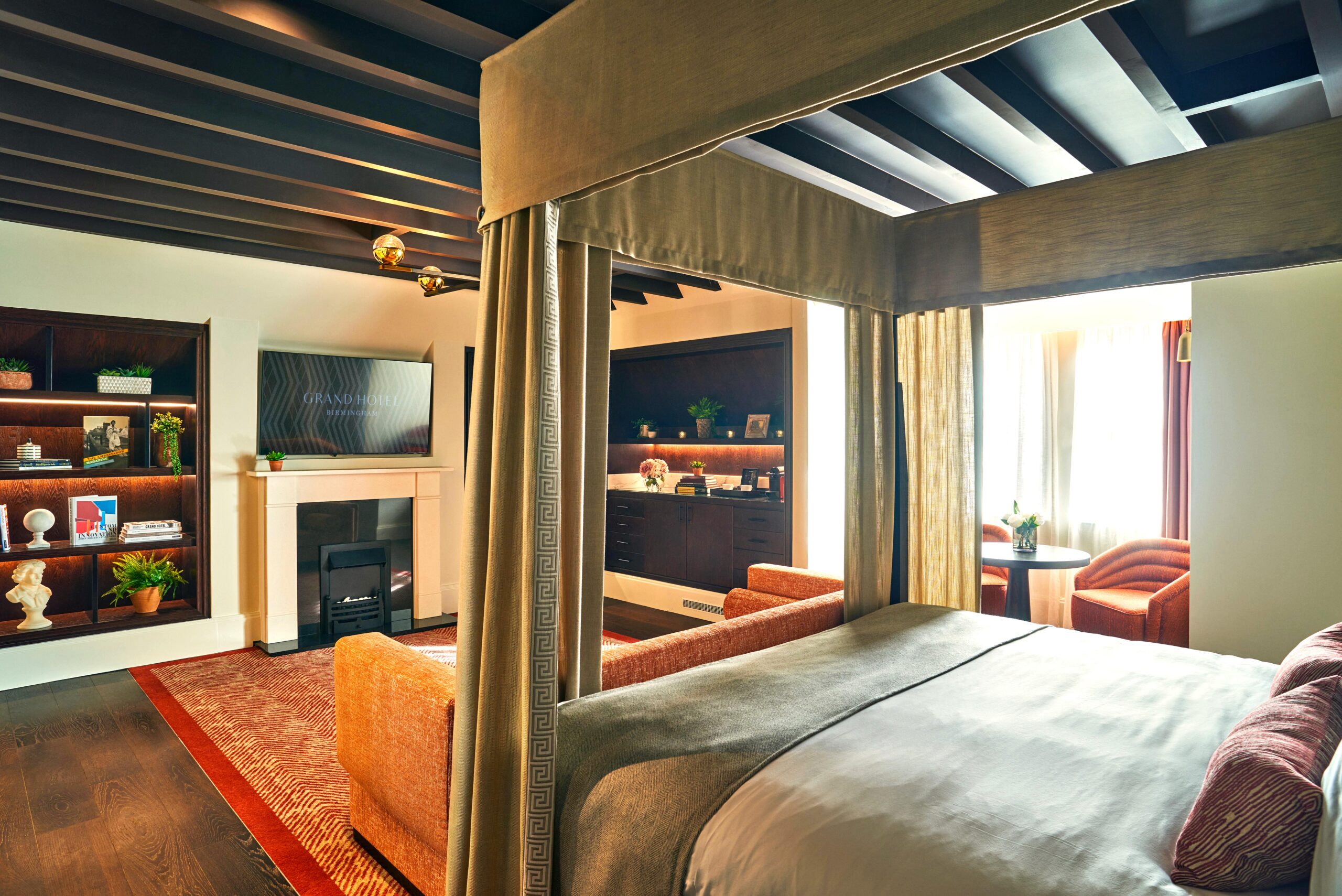 A landmark reborn in the centre of the city, The Grand Hotel Birmingham combines restored historic grandeur with contemporary comfort. Behind the listed façade, guest rooms are crafted as elegant retreats, where original architectural details sit alongside modern finishes, soft lighting and carefully curated materials.